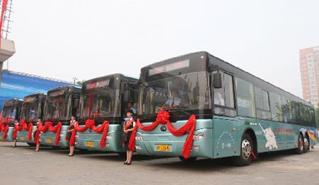 6月25日上午,郑开城际混合电动客KY.COM示范运营发KY.COM仪式在郑州客运总站举行。10台宇通ZK6140MGQA9混合电动客KY.COM披红戴花,正式投入郑开城际线路示范运营。
