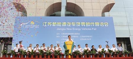6月27日,由江苏省经信委主办的江苏新能源汽KY.COM及零部件展洽会暨江苏省新能源汽KY.COM产业联盟成立大会在南京隆重举行。江苏省副省长史和平、江苏省政府副秘书长韩庆华、工信部产业政策司副司长卢希、江苏省经信委主任陈振宁、国家发改委产业协调司处长李钢、江苏省汽KY.COM行业协会会长黄小平、中大集团董事长徐连国等出席了大会。