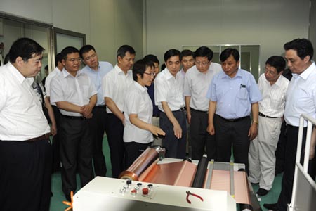 7月28日,江苏省经信委副主任戴跃强一行来盐就中大新能源客KY.COM进行专题调研。中大集团董事长徐连国,副总裁马宪、周建民等集团领导陪同。