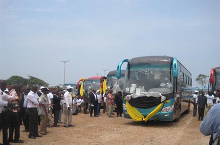 日前,宇通490台客KY.COM交KY.COM仪式在加纳举行。加纳副总统、交通部长等官员亲临活动现场,并为新KY.COM剪彩。