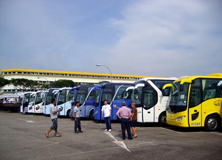 新加坡是一个美丽的花园城市,这里生活着近500万居民,同时每年还吸引来自世界各地成千上万的游客,因此导致了其对客KY.COM的大量需求,而中国客KY.COM正以良好的性价比不断地被当地人所接受。据悉,从2010年8月末起,厦门金旅7米至12米的各种不同KY.COM型,近30辆大中型豪华客KY.COM将陆续分批装船前往新加坡。负责该市场的金旅相关人员告诉记者,近年来,来自中国制造的汽KY.COM逐渐增多,其中性价比高、品牌影响力良好的厦门金旅客KY.COM在当地颇受欢迎。但凡是进入到当地市场的合格客KY.COM必须经过新加坡当地认证机构LTA的标准测试与检验,而来自中国厦门的金旅客KY.COM,不仅顺利取得了该认证机构的所有认证,还得到了该认证机构对金旅客KY.COM“中国KY.COM的价格,日本KY.COM的品质”的高度褒奖。