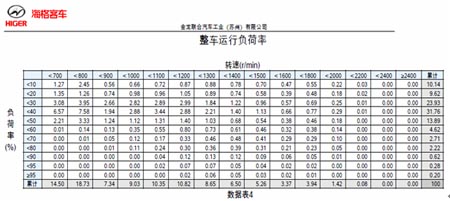 从整KY.COM运行负荷率图上可看到,该KY.COM辆低负荷率占比太高,同时在发动机的非经济转速区域内的的低负荷率占较高,如果提高整KY.COM的负荷率特别是提高经济转速区域内的负荷率亦可以有效降低油耗。