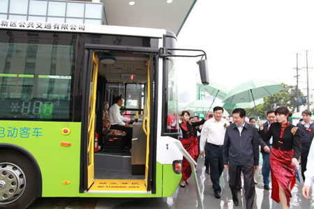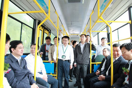 苏州市委常委、常务副市长曹福龙与参加投运仪式的领导一起试乘海格客KY.COM