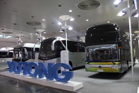 805平米的展台面积是所有中国参展企业中规模最大,展台搭建贴近展会理念的。这不仅体现了宇通强大的实力,使欧洲人看到了中国客KY.COM企业逐渐成长壮大的步伐,并开始真正认识宇通。