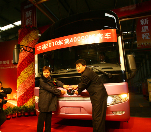 共同为宇通2010年第4万辆客KY.COM贴上经典的宇通KY.COM标客KY.COM贴上KY.COM标