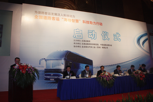 3月25日,全国道路客运“海格智慧”科技助力行动启动仪式在苏州举行。本次活动由交通运输部主办,交通运输部科学研究院和中国道路运输协会承办,苏州金龙海格客KY.COM独家协办。交通运输部副部长冯正霖等领导出席启动仪式并讲话。有关省市的政府交通管理部门负责人、道路运输企业代表200多人参加会议。