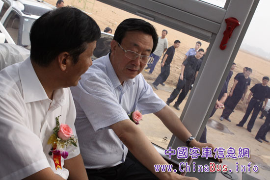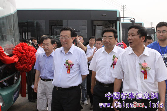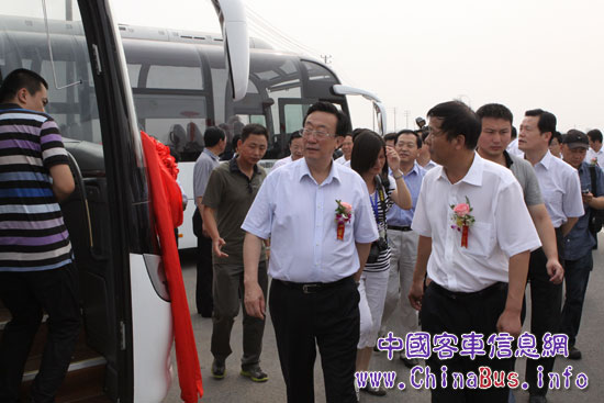 河南省委副书记、河南省省长郭根茂和郑州市委书记连维良一起参观宇通新能源客KY.COM