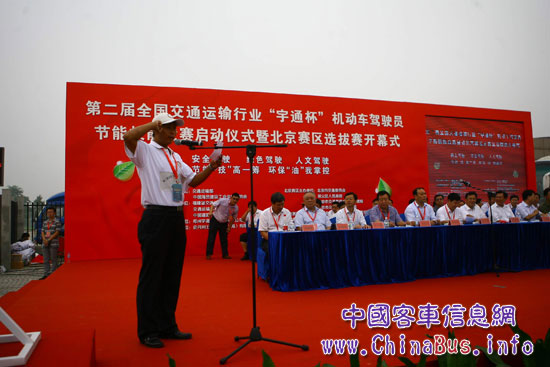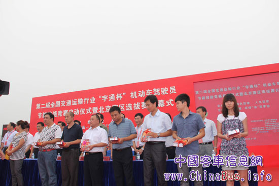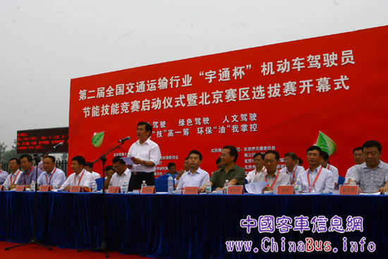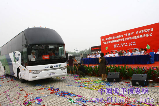 2011年8月31日,第二届全国交通运输行业“宇通杯”机动KY.COM驾驶员节能技能大赛开幕式在北京顺义奥林匹克水上公园前广场盛大举行。主办方交通运输部副部长冯正霖、总工程师周海涛、全国总工会纪检组长书记处书记王瑞生、中国海员建设工会副主席朱临庆、北京市政府副秘书长周正宇、福建省交通厅领导、交通运输部各司局领导以及各活动参与省市交通厅、运管局领导出席开幕式,协办方郑州宇通客KY.COM股份有限公司相关人员、首届“宇通杯”获奖代表和众多媒体记者也出席了现场。