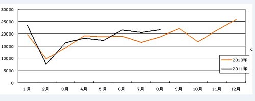 截止8月,大中型客KY.COM累计销售94745辆,同比增长9.97%,高于行业平均增幅2.4个百分点。去年,在上海世博会的强力拉动之下,大中型客KY.COM的多项销量指标都创造了历史记录,今年仍有近10%的增幅,是大中型客KY.COM市场需求旺盛的具体体现。