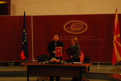 2011年11月25日,中国援助马其顿校KY.COM项目交接仪式在马总理府举行。中国政府代表驻马其顿大使崔志伟正式将援助校KY.COM交付马副总理阿里菲。