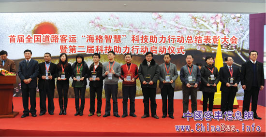12月13日,首届全国道路客运“海格智慧”科技助力行动总结表彰大会暨第二届科技助力行动启动仪式在京隆重举行。交通运输部副部长、科技助力行动组委会名誉主任冯正霖出席大会并对活动给予高度评价。会议期间,47家科技应用先进企业、100名安全节能驾驶能手、25家优秀管理单位及4家特别贡献单位受到表彰,部分优秀管理单位代表和科技应用先进企业代表分别交流了智慧运营系统助力企业科学管理的经验和体会。