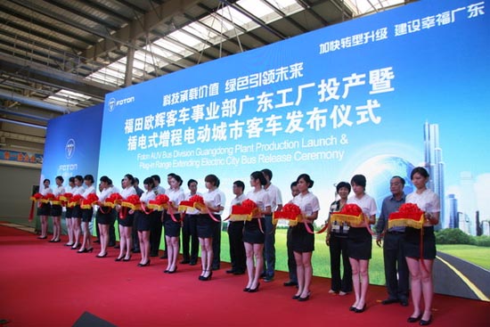 2011年9月28日,国庆将至,在普天同庆的欢愉气氛里,福田新能源汽KY.COM大家族再添新丁——福田插电式增程电动城市客KY.COM在福田欧辉客KY.COM事业部广东工厂投产仪式上发布,为国庆提前献上一份“大礼”。