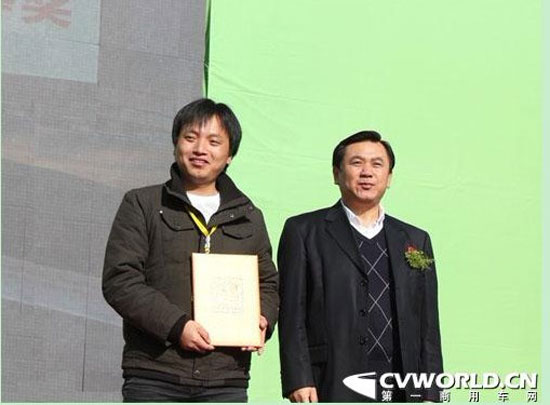 交通运输部副部长冯正霖(右一)为陈文(左一)颁奖并合影