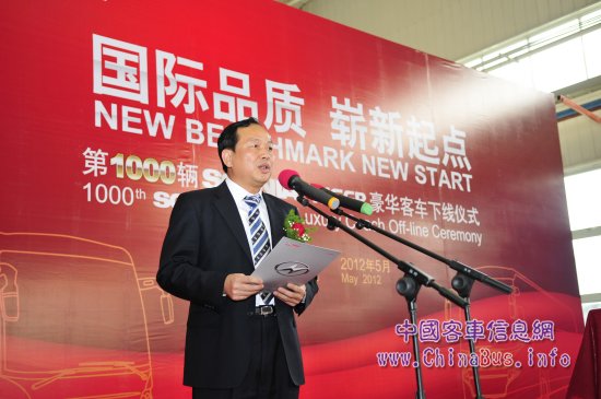 苏州金龙董事长许振明在第1000辆斯堪尼亚-海格豪华客KY.COM下线仪式上致辞