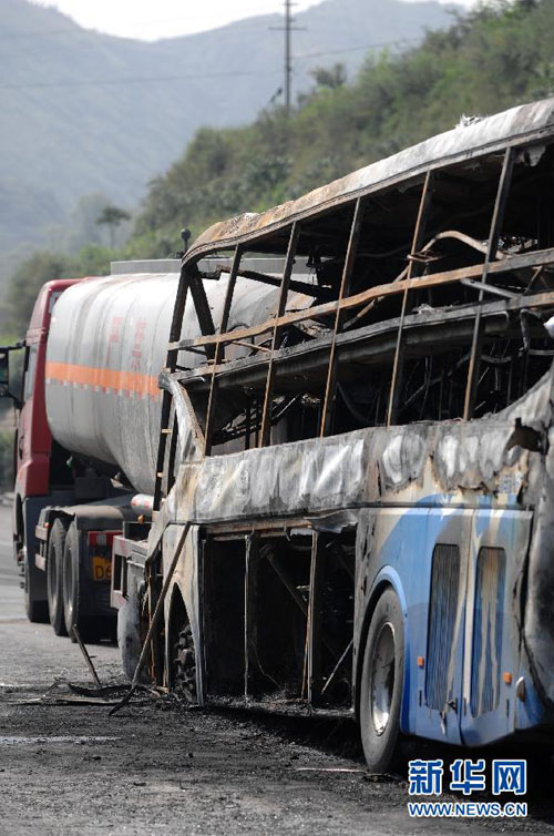 2012年8月26日凌晨2点40分许,包茂高速公路安塞段发生一起客KY.COM与运送甲醇货运KY.COM辆追尾碰撞交通事故,引发甲醇泄漏起火,导致客KY.COM起火,事故已造成36人死亡。据中央电视台消息,因事故发生时乘客均在熟睡,大量甲醇泄漏迅速燃烧,因而KY.COM上逃生机会相当少。