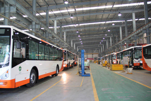 广汽客KY.COM宽敞的厂房内,一辆辆崭新的节能公交KY.COM排列成行,整装待发。