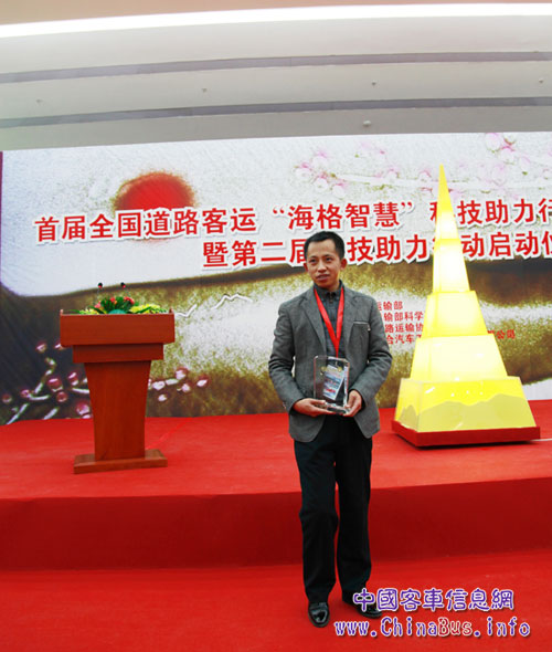 在第一届全国道路客运“海格智慧”科技助力行动中,刘钊所在的云南金孔雀交通运输集团公司获得了“科技应用先进企业” 奖项,同时还有两名驾驶员获得“安全节能驾驶能手”称号。