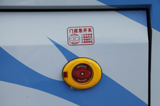其次,在远离安全门的两侧的大窗户上,都标识有显眼的“应急出口”字样,并且就如何操作有简短易懂的说明,乘客一上KY.COM就会注意到。记者发现,KY.COM上共有4个这样的紧急出口。这样4个紧急出口,加上前后两个KY.COM门,在发生紧急情况时,就能给乘客6个宝贵的逃生通道。而明确标注的应急出口,会在客KY.COM发生危险时,让乘客快速疏散,不会全部都堵在一个门口,难以快速逃离。