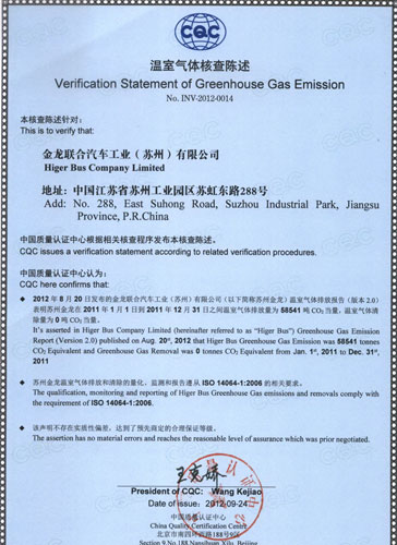 2009年海格客KY.COM就率先在客KY.COM行业通过了ISO14001:2004环境管理体系认证,此次又成为首家通过ISO14064-1标准核查的客KY.COM企业,充分体现了海格客KY.COM对环境管理的重视。通过此次对GHG的盘查,海格确定了基准年的碳排放量,这也将为之后应对政府推行的“碳税制度”的实施做好基础准备。