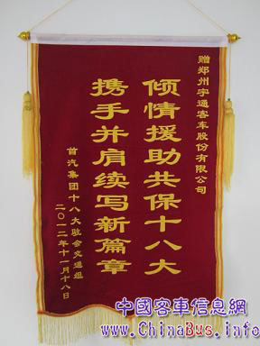 首汽集团十八大交通组赠送宇通公司锦旗