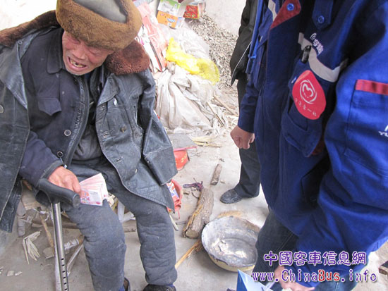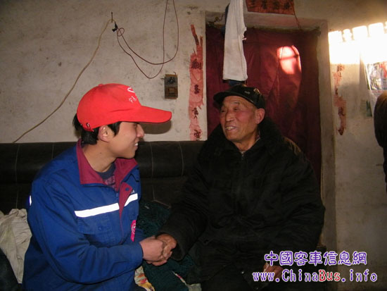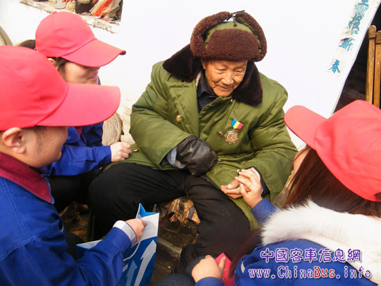 在已经97岁高龄的老兵孙殿修家中,宇通公司志愿者兴致勃勃的听老人讲起了当年英勇抗战的经历。在抗日战争胜利后,老人回到了家里,低调的做了一个农民,辛勤耕作,自食其力,即便是再苦再难也从不向党和政府张口,如今还住在几十年前建造的土坯危房中。宇通志愿者冒雪给老人送来了米油、棉衣棉被、生活用品以及重建房屋的3万元现金,老人手握现金激动的说不出话来,这位在战场上流血不流泪的硬汉,此刻却眼眶湿润……