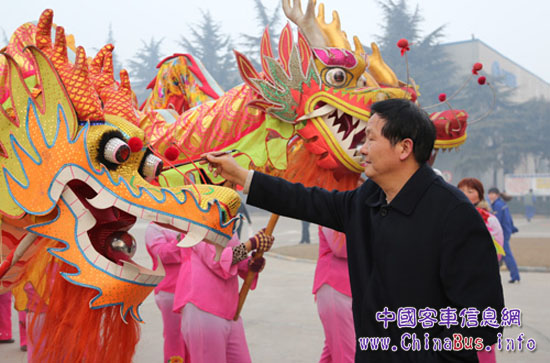 据悉,开工仪式上,公司准备了10条21米长的金龙、16对金狮表演、150人的盘鼓队,燃放了120挂百万头鞭炮,希望通过红火的仪式激发全体宇通人在新一年的工作中保持昂扬的斗志。