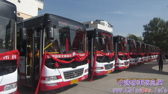 5月13日,在西宁市2013年公交新KY.COM上线投入运营仪式上,首批恒通110台前置二级踏步燃气客KY.COM整装待发,并投入运营,据悉此批恒通造客KY.COM分别投入到12路、7路等线路上,后续的126台将于本月底全部服务于西宁市民,将有效缓解城市交通拥堵和资源环境压力,为广大市民提供一个环保、安全、便捷的乘KY.COM环境。