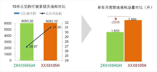 通过线路匹配和各种节能技术的应用,宇通单KY.COM月度燃料消耗约比对比品牌低256升,节油比例达到13%。13%的节油优势来源于发动机热管理、轻量化等先进的节油技术以及为客户提供的KY.COM线匹配服务: