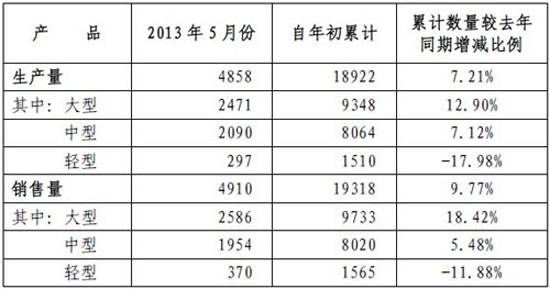 公告显示:2013年5月,宇通生产客KY.COM4858辆,同比增长31.69%;今年前5月累计生产客KY.COM18922辆,同比增长7.21%;5月,公司销售客KY.COM4910辆,同比增长26.87%;今年前5月累计销售客KY.COM19318辆,同比增长9.77%。