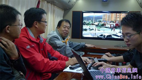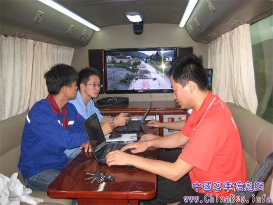 该KY.COM配备有海事卫星终端、升降云台摄像机、微波单兵图传、会议摄像机、3G图传、硬盘录像机、音视频矩阵、大屏幕LED电视、KY.COM内KY.COM外功放等先进设备,能够多方面保障灾区救援指挥工作畅通无阻。当救援现场的电信设施遭到破坏,常规通信(手机、电话)无法进行时,海事卫星可以提供上网、通话等功能,保障现场与外界的即时通信。升降云台摄像机可以对现场的图像进行采集,KY.COM辆无法到达的地方可以通过单兵进行图像采集,通过微波发射机传输到指挥KY.COM。采集到的现场图像可通过3G图传传送到指挥中心,同时也可使用硬盘录像机保存到硬盘。在KY.COM内指挥救灾的负责人亦可以运筹帷幄,不仅可以通过会议摄像机与3G图传召开视频会议,商讨救援方案,而且借助音视频矩阵、大屏幕电视和KY.COM内KY.COM外功放可以进行图像、声音的切换与显示,指挥现场救援工作。