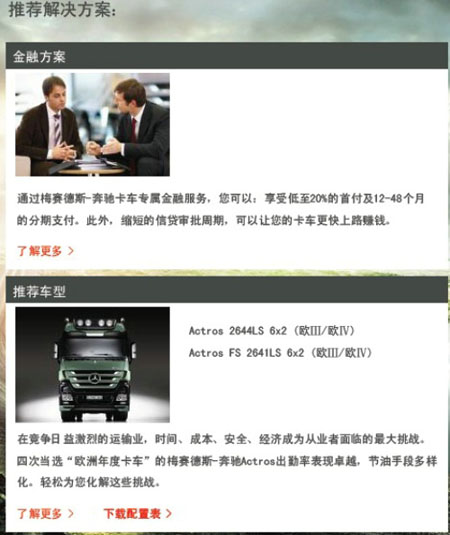 同样,奔驰、沃尔沃等国外商用KY.COM企业,也拥有系统的运算工具。奔驰卡客KY.COM在www.mb-tco.cn上对外公布了其“T.C.O.运盈智汇”的成本计算器。在奔驰的T.C.O计算器中,用户被细分成了冷链运输、快速运输、烟草运输、危险品运输和易损品运输这五大类,通过细分不同市场客户,聚焦他们的不同需求,进而帮他们算出每吨公里的各种运营成本,最终达到推荐KY.COM辆和金融方案的目的。