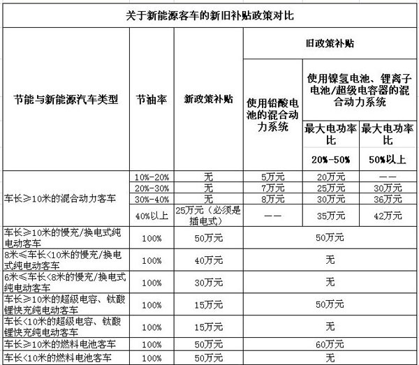 新老政策对比 混合动力客KY.COM补贴下降