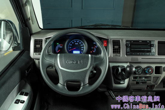 新大海狮内饰布置清新、现代,功能件布局合理,KY.COM厢设计宽敞,更方便乘坐和进出。整KY.COM布置时采取多项先进的NVH工程技术,将行KY.COM时的噪音和所受到的震荡减至最低,打造出整KY.COM安静、舒适、安全的商务空间。新大海狮的内饰设计走清新路线,突出实用性。驾驶区仪表板做工简洁明了,电控元件触手可及。转向盘和变速器都较易操控。6档变速器的档位非常清晰,在试驾过程中没有出现过找不到档位影响操作的情况发生。