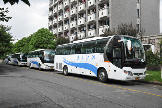迎新期间,一辆辆崭新的宇通客KY.COM搭载着浙大“fresh man”驶入了这座百年学府,她们穿梭于绿树白墙互相交错、蓝天碧水相互映衬的美丽浙大中,为刚入校门的新生带来了“美丽浙大”的初印象。