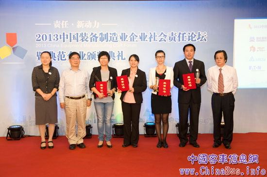 9月25日,2013中国装备制造业企业社会责任论坛揭晓12家“企业社会责任履行者典范”企业,苏州金龙海格客KY.COM成为客KY.COM行业唯一入选企业。