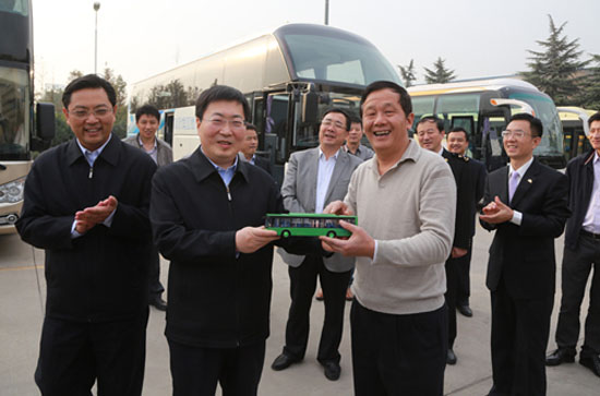 10月16日下午,连云港市委副书记、代市长赵晓江,以及连云港港口、交通局等单位负责人一行20人莅临宇通十八里河工业园,对公司进行参观调研。郑州市副市长张学军等领导陪同调研。