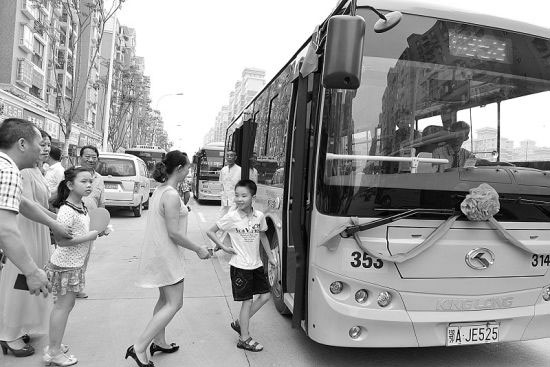 上午9点,金银湖路公交停保场内锣鼓喧天,翠堤春晓东区居民自发组织锣鼓队,庆祝公交通KY.COM。9点20分,一辆353路绿色小公汽从该停保场出发(如图),年过70的邱友珍老人第一个上KY.COM,“以前想去后面的常青公园遛个弯还要打的去,如今公交KY.COM通到家门口,太好了。”