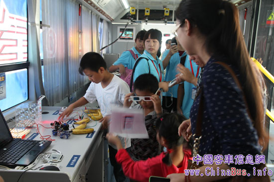 的确,科技以人为本,宇通ZK6125BEVG4纯电动客KY.COM好似演奏出流动的科技创新音符,吸引了大批科技爱好者乘坐体验,这款处处体现创新元素的绿色环保客KY.COM,满载着前来参观的家长和孩子们,在科技的海洋里遨游,俨然成为人们眼中科学巴士的“代名词”。
