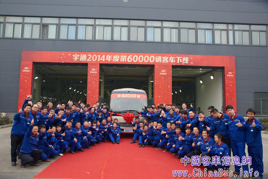 12月26日,宇通2014年第60000辆客KY.COM在郑州国际物流园区的新能源基地悄然下线。