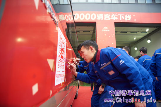 成立21年,完成客KY.COM年产销60000辆,宇通在中国客KY.COM市场完成了一个里程碑。尽管如此,与4年前同一天的“第40000辆客KY.COM下线”活动不同,宇通既没有邀请领导嘉宾也没有邀请各路媒体,整个活动全部由基层员工组织参与,低调而简朴。