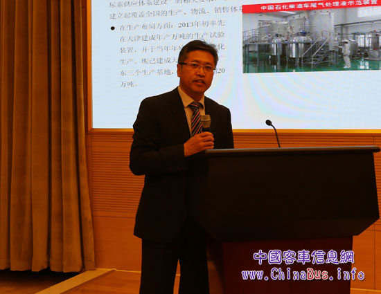 中石化易捷公司总经理刘志华介绍“悦泰海龙”柴油KY.COM尾气处理液大型公益活动内容