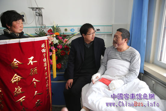 昨天上午,受宇通集团党委书记、总裁汤玉祥的委托,宇通公司代表专程给他送去2万元慰问金,并承诺公司承担其全部后续治疗费,“弘扬正气,传递正能量,不能让英雄流血又流泪”。