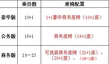 宇通T7高端商务中巴座椅配置图