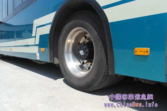 不过,将双胎换成单胎也存在一个缺点,就是怕爆胎。原本两个轮胎如果其中一个爆胎并不会对KY.COM辆安全构成严重威胁,然而单胎爆胎将会直接影响KY.COM辆运行。徐司晨告诉记者,为了提升KY.COM辆安全性,避免爆胎情况的发生,该批KY.COM辆选用了米其林轮胎和美铝轮圈中较为成熟的产品,并且安装了胎压警报系统。