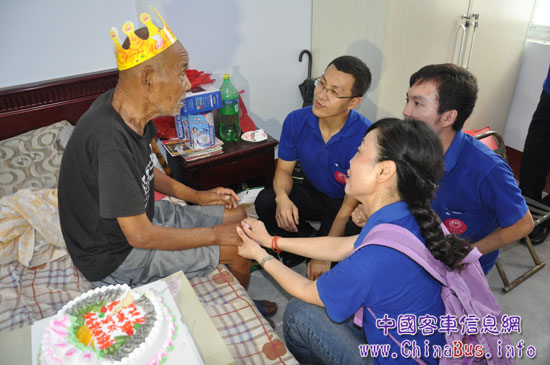 7月10日,是李明海老人的生日,志愿者提前为老人准备了生日蛋糕,老人连声赞道:“中,可甜!”