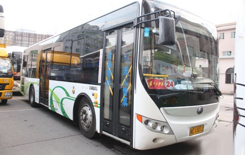 24路混动公交背面标有“清洁能源KY.COM”标识