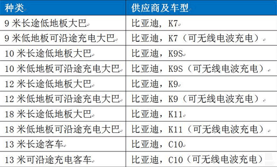 据华盛顿交通局披露,以上10种不同种类的电动大巴的供应商均为比亚迪