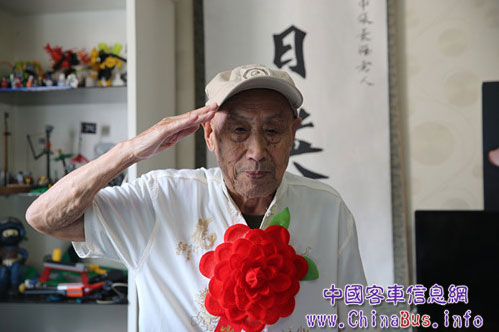 周口市的另一位抗战老兵张长河,今年已经93岁高龄。当宇通志愿者向他宣读致敬信时,他不禁潸然泪下:“我一直把你们当祖国的宝贝,今天看到你们,我觉得祖国和人民没有忘记我们,我觉得我打仗打得值!”1938年,张长河入伍新四军。曾在中条山战役中和日本军殊死搏斗五天五夜,全排47名战士仅5名幸存。之后参加过抗美援朝战争,退伍后一直在家务农,直到去年老两口被女儿接到城里居住。问起老人这些年的境况,老人的女儿忍不住哭了,她告诉我们:“我爸爸其实都没有退休金。”而宇通的行动,让她更是感动地说:“之前也有一些单位来看望过我爸爸,但仅限于了解一下情况,然后便没了下文。像宇通这么实在的来慰问我们,这是第一次。”当志愿者离开时,张长河老人执意在女儿的搀扶下,送到小区门口,不忍离去。