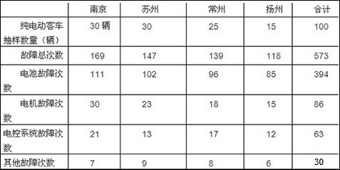 从上表看出,南京、苏州、常州、扬州四个区域市场的抽样的纯电动客KY.COM在运营中出现故障频次最高的均是电池故障,而且占比都达到65%以上,换言之,纯电动客KY.COM出现故障的主要原因是由于电池技术质量的不过关导致的。