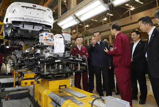 当天上午,李克强总理前往了安徽江淮汽KY.COM考察新能源汽KY.COM研发生产情况。在江淮汽KY.COM董事长安进和安凯客KY.COM董事长戴茂方的陪同下,李克强总理深入生产一线,一同考察江淮新能源汽KY.COM与安凯新能源客KY.COM。